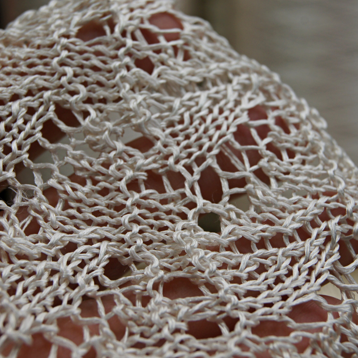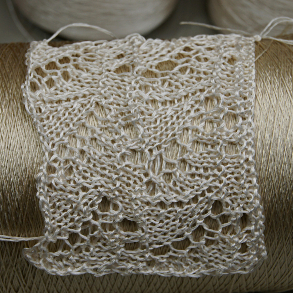 Мой образец связан в 2 сложения на спицах № 3. Образец размером 10 см*8 см весит 2 гр.